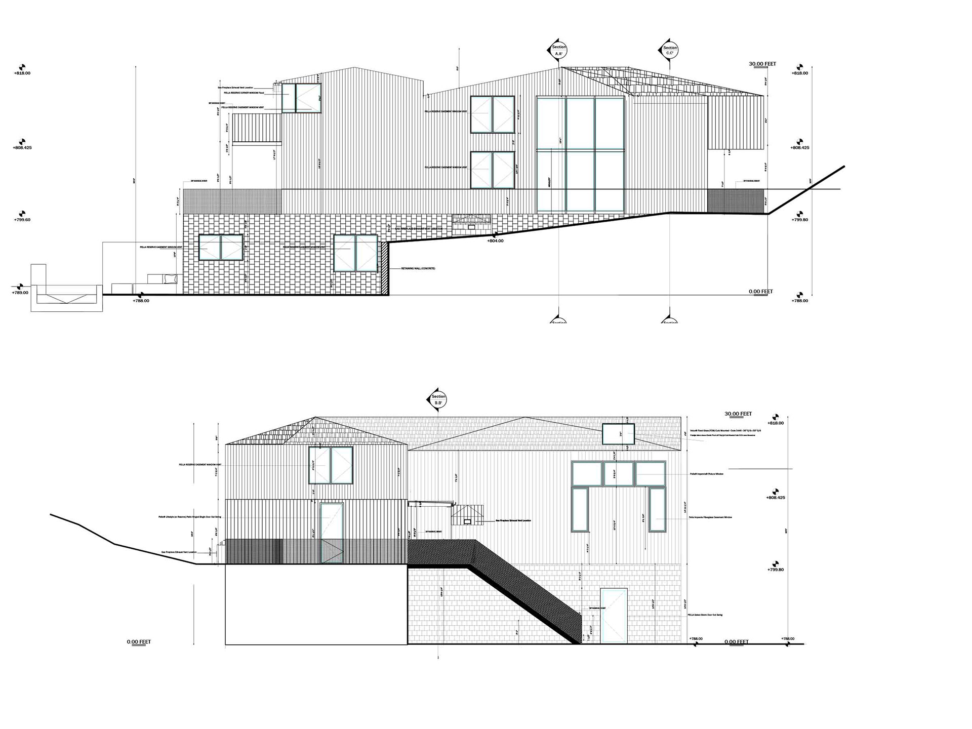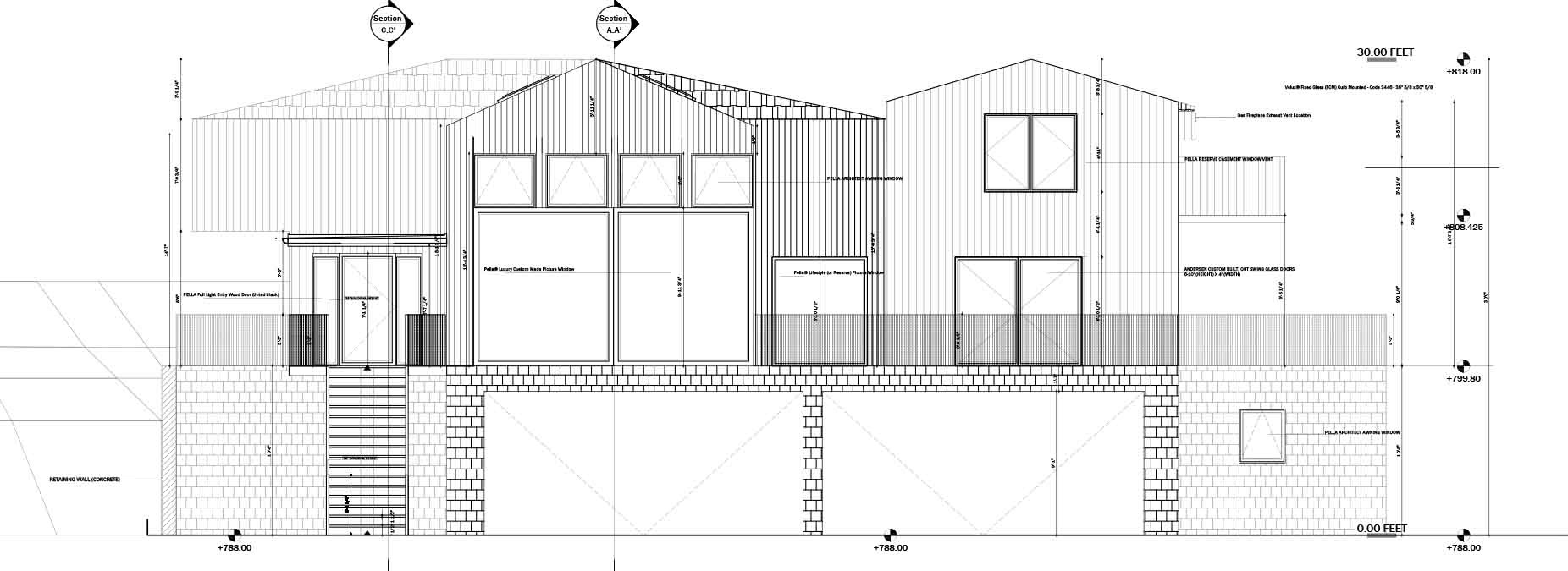 The house sits perched on the basement level, with two main levels for living and resting spaces.
