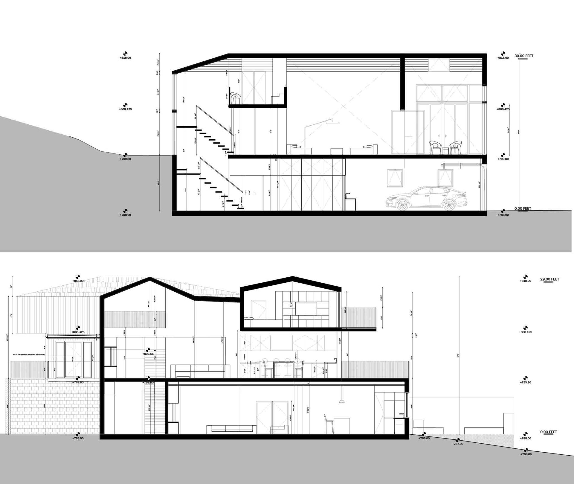 A large family with a disabled person, required a careful approach to design a house that could take advantage of the terrain slope and use local aesthetic of wood cladded and metal houses.