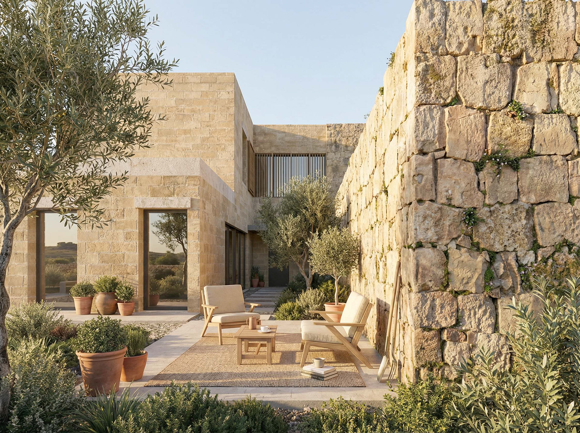 The idilic location of an ancient farmhouse in Malta, dating back to the 15th century, demanded a thoughtful look into the preservation and restoration of the existing ruins. The intent, transforming this heritage building into a house for the owner.